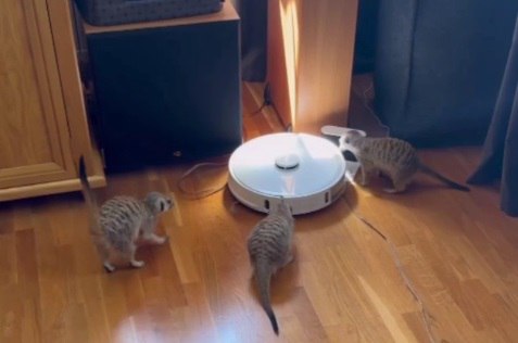 Крякает из-под дивана на пылесос или, гордо подняв хвост, бежит сражаться с паровой шваброй — поздравляем, ваш сурикат ситуационно обогащается😁