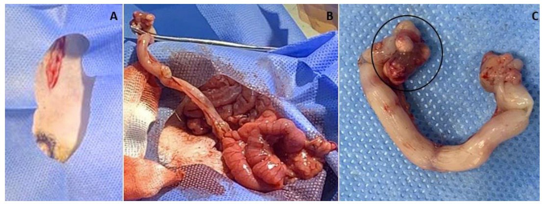 Узловые образования (лютеома) в левом яичнике суриката, выявленные во время операции